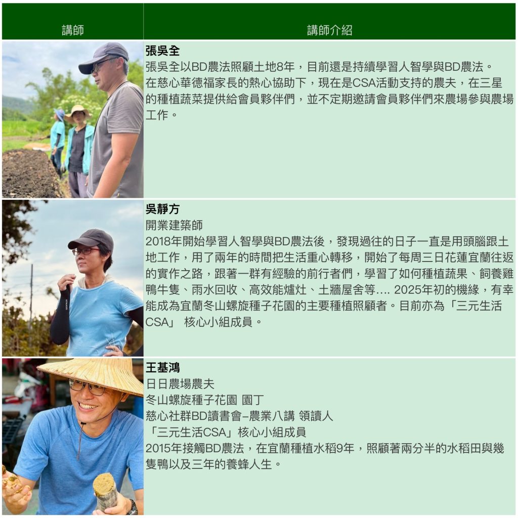 - 本課程提供「三元生活CSA」、「台灣人智學有機農耕發展協會」會員優惠價:2400元
